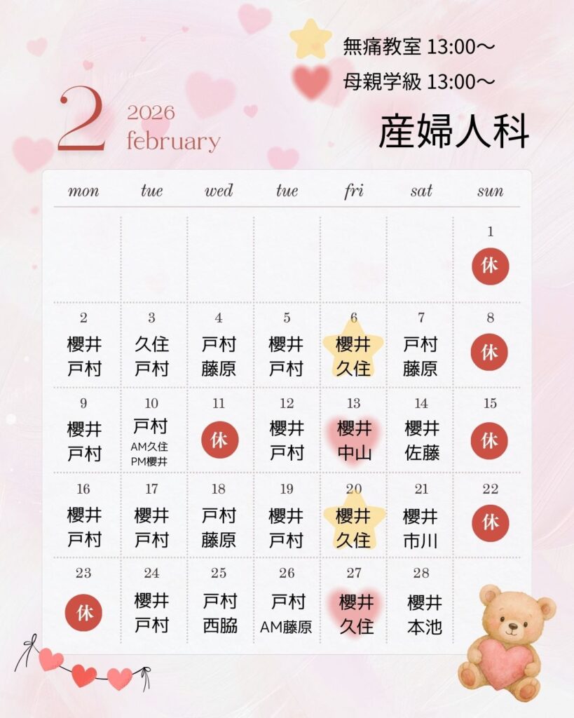 2/3(火)AM/PM 櫻井Dr → 久住Dr へ変更となっております。